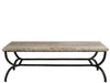 The Griffith Park Cocktail Table is a stunning centerpiece that combines the beauty of natural stone with the elegance of metal. The Gray Tavertine stone top, with its subtly chipped edges, adds a touch of rustic charm, while the oil-rubbed bronze metal base creates a sophisticated and modern look.