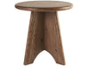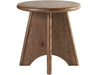 The Round Side Table is a stunning and functional piece of furniture. Its circular tabletop and geometric base create a striking silhouette. The warm, natural wood finish adds a touch of rustic elegance, making it a compelling addition to any living room or bedroom.