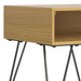 - Storage and Design: It features an open compartment for convenient storage and is supported by four black iron hairpin legs, giving it an industrial design aesthetic.