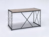 - Design and Style: The rectangular vanity desk boasts an industrial design with a wooden top finished in oak melamine paper and a metal base in black antique with a silver brush finish. The unique chain legs and "X" support add to its rustic appeal.