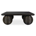 This Coffee Table Is Sure To Be The Focal Point Of Any Room, Featuring Oversized Rattan-covered Spheres As Legs. The Table Is Crafted From Mango-wood Veneer And Finished In A Distressed Black.
