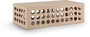 Bring your room to life with the unexpected design of this Kinsley oak coffee table. Part art, part functional item that adds convenience to your space, this coffee table offers a design that instantly commands attention wherever it's used. Multiple cutouts along the sides of this table allow for a fun and unique aesthetic in your room, and its ample top gives you a place to hold magazines, books, remotes, and other items within easy reach of your sofa or couch. A rich finish adds modernity to the table's art deco design.