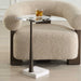 This Drink Table Is A Testament To Refined Craftsmanship, Blending Natural Materials Like Marble And Metal To Create An Eye-catching Piece. Its White Marble Foot With Subtle Gray Veining Is Paired With A Thick Crystal Table Top, All Connected By A Tapered Metal Base In Black. True To The Nature Of Natural Materials, Each Piece Will Have Unique Marbling And Veining Throughout.