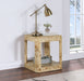 Bring home the Reeves Burl Table to give your room a fresh new look. This art deco table features a sleek design with rounded corners and a bottom shelf ideal for storing items you use most handily nearby. Oak veneer and solid wood with MDF construction give the table a sturdy demeanor, so it holds up to use by your busy family. A chic finish and natural wood grain variation ensure that this table blends nicely with existing decor in your modern home.