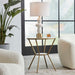 The Refuge Accent Table Is Crafted With A Solid Chiseled Iron Frame And Finished In An Elegant Antique Gold. Paired With A Polished White Marble Top And Petite Shelf.