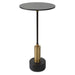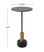 Elegant And Sophisticated, This Round Accent Table Features A Brushed Brass And Satin Black Iron Base With Black Marble Details And A Black Glass Top.