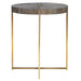 Contemporary In Style, This Accent Table Features A Stainless Steel Framework Finished In A Brushed Brass With A Round Acacia Veneer Top In A Dark Walnut Stain Washed With A Light Gray Glaze.
