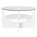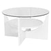 • Unique Design: The U-Shaped coffee table features a circular glass top and a seemingly floating circular shelf, creating a distinctive and stylish appearance for any living space.