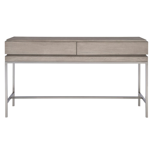 With Modern Simplicity, This Console Table Is Layered In An Oak Veneer And Finished In A Light Mushroom Gray Stain Featuring Two Hidden Storage Dra...