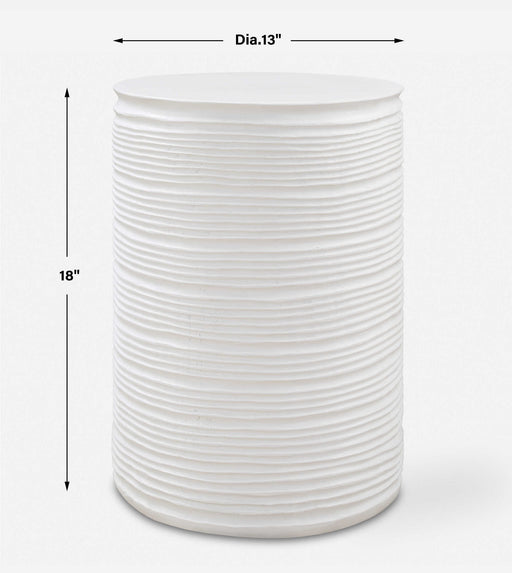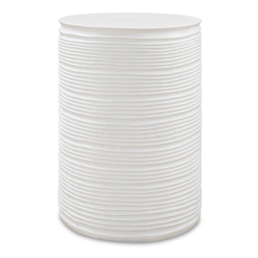 Formed From Cast Resin This Accent Table Displays Its Depth And Detail Through Recessed Grooves Along Its Sides, Finished In Plaster White. Such Ca...