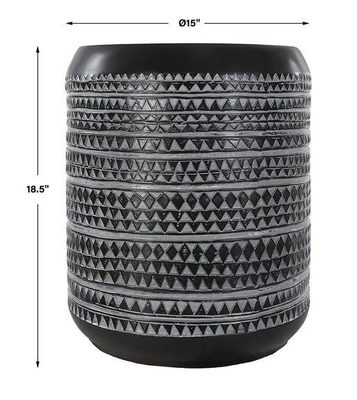 Make A Fun Tribal Statement With The Cutting Edge Accent Table, Formed From Cast Resin In A Chalk Black And Gray Pairing With Recessed Textures.Pro...