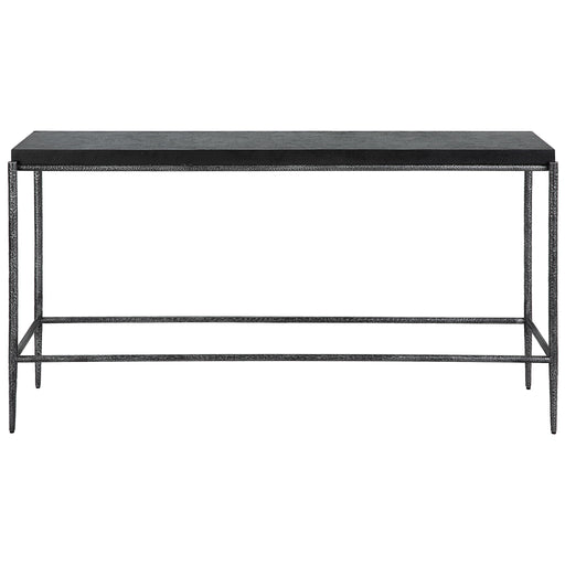 Heavily Textured Hammered Metal In Dark Silver Supports A Rich Black Natural Porous Concrete Top Adding A Contemporary Edge To Your Space.Product F...
