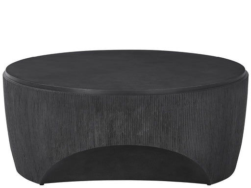 The Dockside Cocktail Table showcases a white concrete oval top with textured edge sitting atop a warm oak base. The use of natural materials creat...