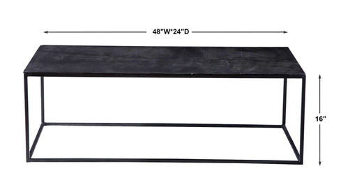 Sleek And Modern, This Coffee Table Showcases Linear Steel Accents Plated In A Brushed Pewter Accented By A Dry Ebony Finished Oak Veneer Top With ...