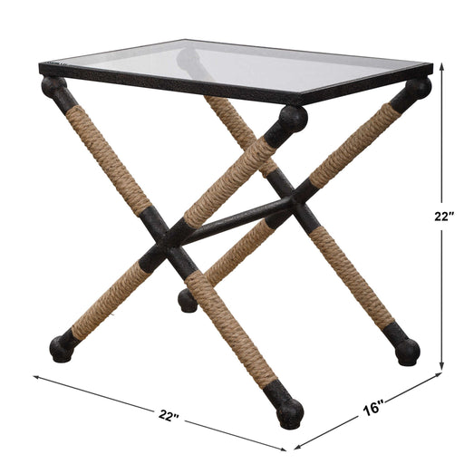A Nod To Classic Coastal Style, This Accent Table Features A Rustic Iron Frame Wrapped In Natural Fiber Rope Accents Topped With Clear Tempered Gla...