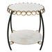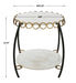 Shelves Of Honed White Marble Are Decorated With Antique Gold Ringlets With Gracefully Arched Iron Legs In Matte Black. True To The Nature Of Natural Materials, Each Piece Will Have Unique Marbling And Veining Throughout.