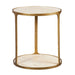 The Warm Tones Of The Clench Side Table Are The Perfect Accent To Any Modern Space. With A Rich Antique Brass Cast Aluminum Framework Accented By Beige Travertine Shelves.