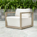 The Remsen Outdoor Lounge Chair Features A Striking Architectural Frame With Smooth Interior Curves That Give A Sculptural Presence. Constructed Of Solid Mahogany Wood In A Weathered Gray Finish With Wire-brushed Details. Its Generously Cushioned Floating Seat, Upholstered In An Oyster White Solution Dyed Acrylic Fabric, Is Designed To Withstand The Moisture And Dirt That Comes With Outdoor Use. Solid Wood Will Continue To Move With Temperature And Humidity Changes, Which Can Result In Cracks And Uneven Surfaces, Adding To Its Authenticity And Character.