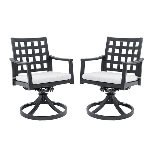 View full detailsModern Classic Outdoor Dining Swivel Rockers With Sunbrella Cushion, Lattice Design, Weather Resistant Frame (Set of 2) - Ember Black
