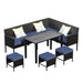 Modern Small Space Patio Furniture 7 Piece Outdoor Set With Waterproof Cushions - Blue / Gray