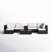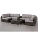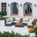 - Complete Outdoor Seating Group: Includes sectional chairs, corner pieces, center console with cup holders, and a glass-top coffee table