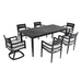 7 Pieces Modern Outdoor Patio Dining Set, Rectangular Table, 4 Chairs & 2 Swivel Rockers, Sunbrella Cushions - Ember Black