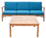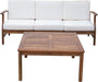 - Set Inclusions: The set includes one left arm seat, one right arm seat, one armless seat, and one table, all crafted from acacia wood with cushions made from 100% polyester.