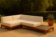 Build the seating group you need for your outdoor entertaining area with one or more selections from the Rio collection including this Rio outdoor water resistant modular sectional. A solid acacia wood frame provides sturdy dependability for this sectional, ensuring its long-lasting performance and impeccable beauty. The plump cushions are encased in resilient water resistant fabric to keep them looking luxuriously beautiful for seasons to come. Attach other units in the collection to this sectional with convenient latches.