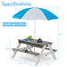 3-In-1 Kids Outdoor Wooden Picnic Table With Umbrella, Convertible Sand & Water, ASTM & CPSIA Certification