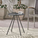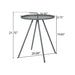 - Modern Design: The side table features a modern aesthetic with its circular design, bold, straight legs, and clean lines. Its distinctive look is further enhanced by a carrying handle and four angled legs that contrast beautifully with the circular tabletop.
