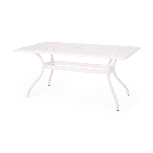 View full detailsCelestine - Outdoor Cast Aluminum Dining Table With Floral Lattice Design And Umbrella Holder