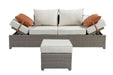 Salena - All Weather Wicker Patio Sofa & Ottoman With 2 Toss Pillows - Beige / Gray