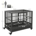 Pawhut - 36" Heavy Duty Dog Crate Metal Cage Kennel With Lockable Wheels, Double Door And Removable Tray - Gray