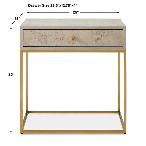 The Cocoa End Table combines practical one-drawer storage with an elegant display shelf featuring distinctive beaded edge detailing. Finished in si...