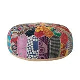 View full detailsVintage Cotton Kantha Patchwork Pouf w/ Embroidery