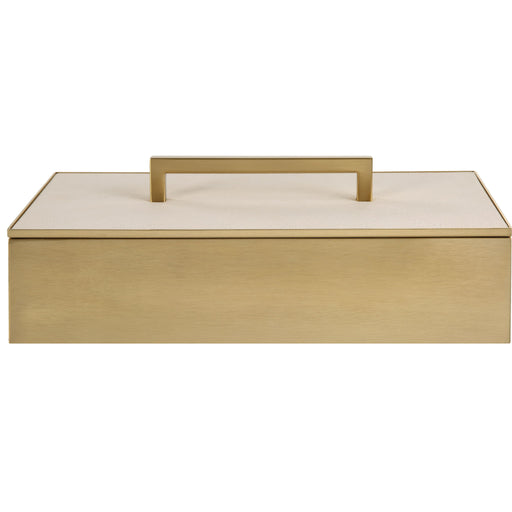 A Classic Silhouette With Modern Touches, This Metal Box Is Finished In A Classic Brass And Covered With A Lift-off Lid Finished In A White Faux Sh...