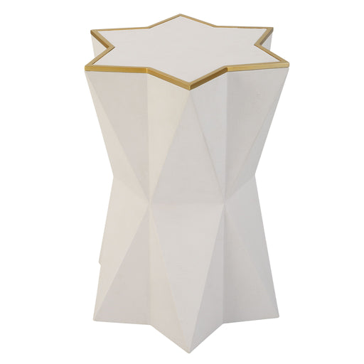 Unique Star Shaped Accent Table Features A Stylish White Faux Shagreen Wrap, Accented With A Hand Applied Gold Leaf Trim.Product FeaturesDesigner: ...