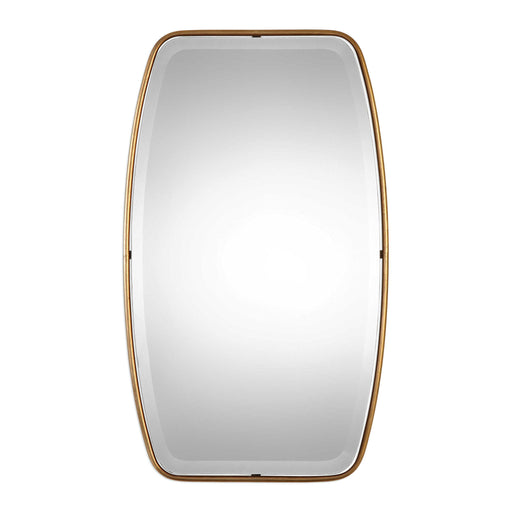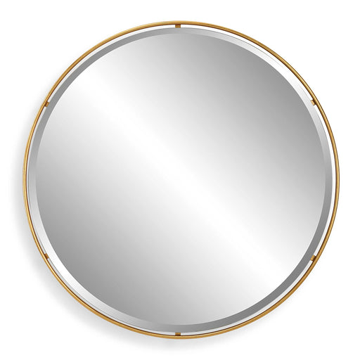 This Mirror Frame Is Forged From Rounded Metal And Finished In A Heavily Antiqued Gold Leaf. Featuring A Floating Beveled Mirror.Product FeaturesDe...