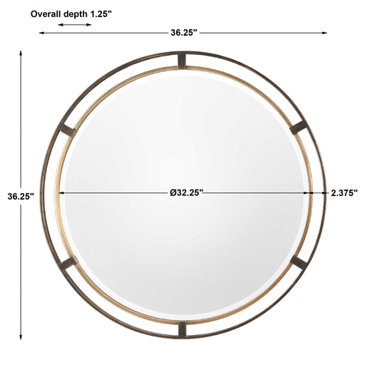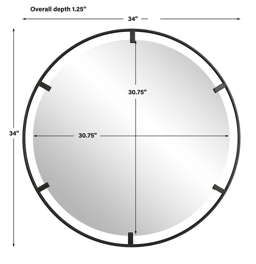 Refined Iron Frame Finished In A Sleek Satin Black, Embracing A Floating Polished Edged Mirror. Cashel - Round Iron Mirror - Black34.0"W x 1.25"D x...