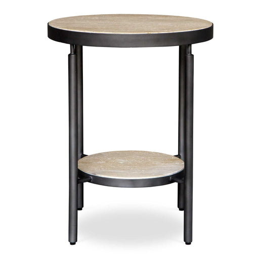 Perfect For Contemporary Or Industrial Interiors The Dauntless Side Table Features Two Beautiful Honed And Unfilled Travertine Shelves Suspended By...