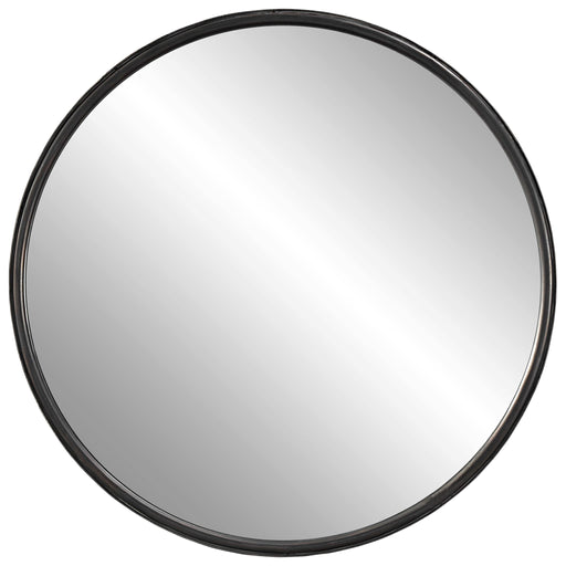 Smooth Rounded Frame Encased In A Thick Iron Band Finished In An Aged Black With Subtle Gray Highlights. Dawsyn - Round Mirror - Black44.0"W x 1.5"...
