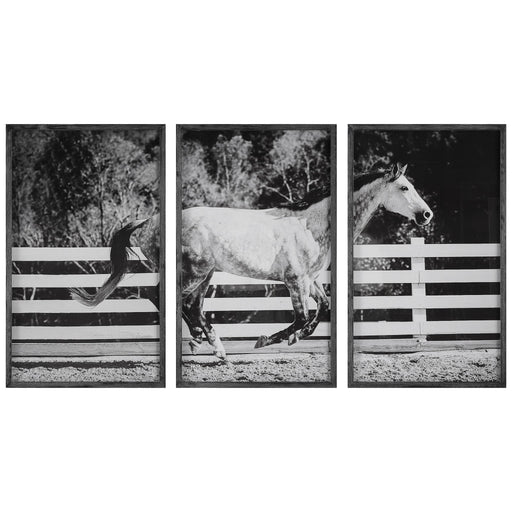 The Perfect Triptych For Equine Lovers, These Exclusive Prints Are Encased In Glass And Surrounded By Wooden Frames In A Black Finish With Ivory Ce...