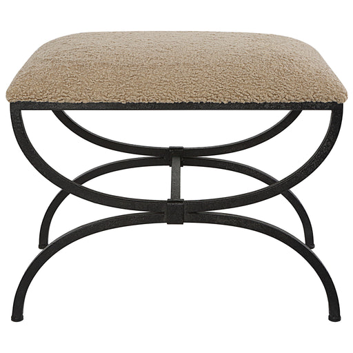 Influenced By Spanish Architecture, This Small Bench Features A Heavily Textured Iron Base Finished In Aged Black Topped With A Plush Faux Shearlin...