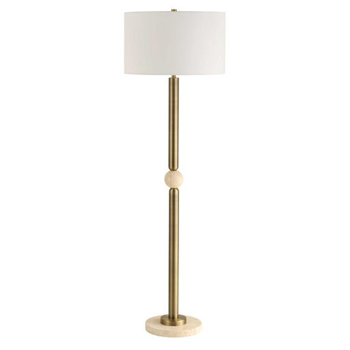 The Hudson Floor Lamp Features A Sleek, Gold Plated Steel Base, Elevated By The Addition Of A Solid Travertine Orb With A Matching Complementary Fo...