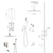 • Comprehensive Components: Includes a 16-inch square rain shower head, shower arm, handheld shower head, tub spout, 59" shower hose, shower holder, and water control valve.