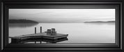 Step into a moment of quiet reflection with this serene lakeside scene, where two empty chairs invite you to pause and embrace tranquility. The monochrome palette enhances the peaceful atmosphere, capturing the stillness of calm waters and distant horizons. Encased in a sleek black frame with real glass, this piece brings a sophisticated touch to any living room, bedroom, or office, offering a timeless escape into nature's gentle embrace.