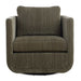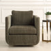 Curves Abound Creating Style And Ease, Featuring A Rounded Frame That Cradles The Base And Rests On A Hidden Swivel. Fully Upholstered In A Rich Textured Chenille In Herb.