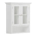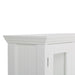 - Features two (2) doors with two (2) adjustable interior shelves and one (1) open bottom shelf. Brushed nickel hardware