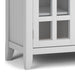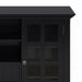 - Features two (2) drawers; two (2) door side cabinets with tempered glass window pane door panels open to adjustable shelves