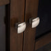 - Transitional style includes tapered legs, grooved sides, molded crown edged table top and brushed nickel knobs